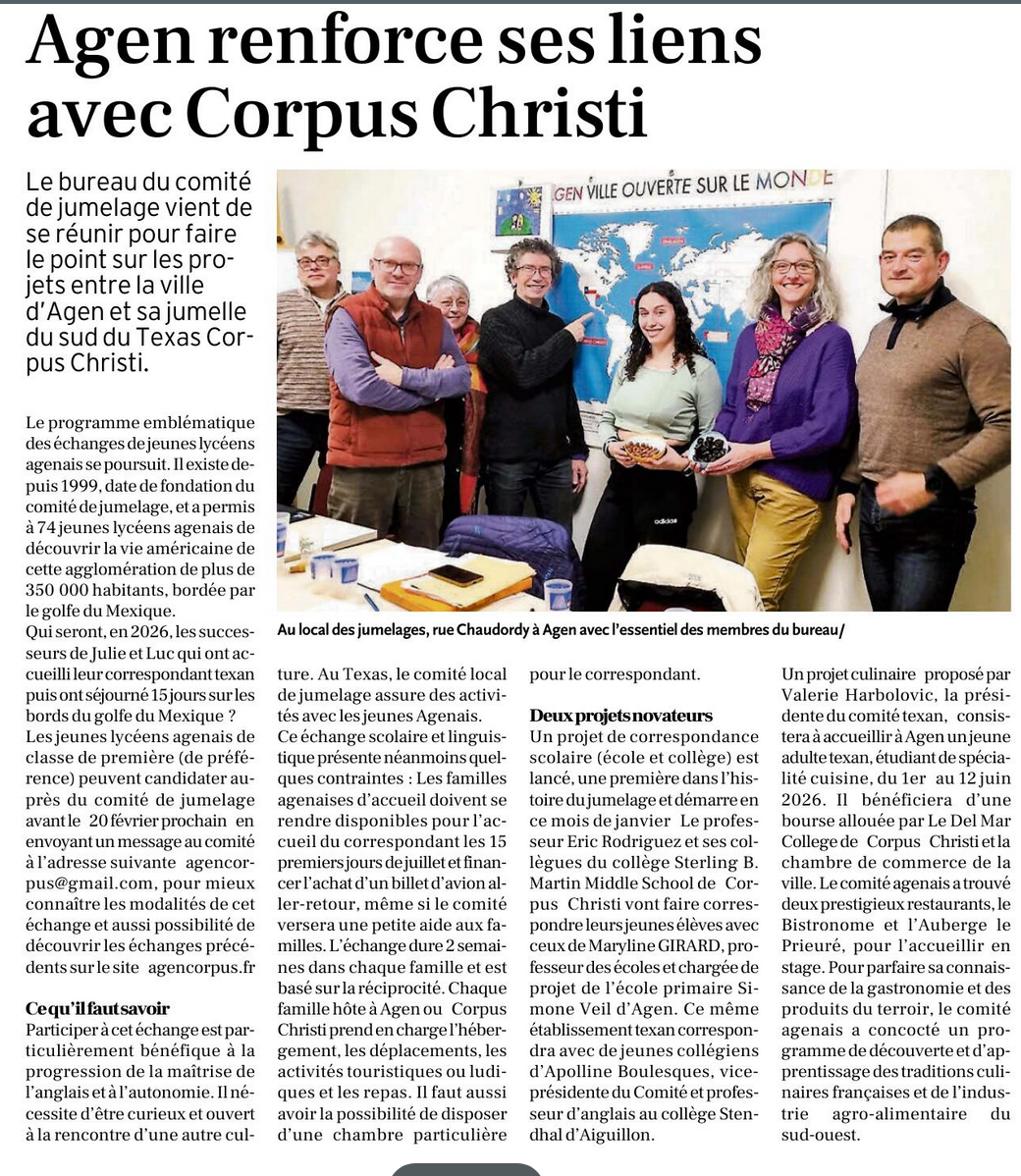 Agen renforce ses liens avec Corpus Christi (publié 31/01/2026)